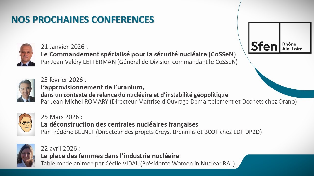 Jean Luc JACOUD présentera un panorama des réacteurs de troisième génération en opération, en construction et en projet, dont l’EPR de conception franco-allemande, l’AP1000 de Westinghouse, l’APR1400 de KEPCO, les VVER-TOI de Rosatom, ainsi que les modèles HUALONG construits en Chine. Les différentes technologies seront décrites avec leurs particularités et leurs atouts ainsi que les évolutions et améliorations en cours d’étude. Les projets nouveaux abandonnés seront également mentionnés.