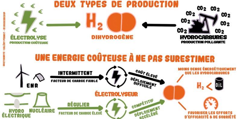 « Le perfectionnement de la technologie des électrolyseurs sera déterminant pour parvenir à produire de l’hydrogène bas-carbone à des prix compétitifs. La France dispose pour cela des moyens industriels nécessaires. Ses ressources en électricité décarbonée lui permettront de faire alors de l’hydrogène un vecteur énergétique complémentaire de l’électricité, là où l’usage direct de l’électricité reste difficile ».