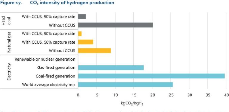 Pour que l'hydrogène produit par électrolyse ait une intensité carbone égale ou inférieure à celle de l'H2 produit à partir de gaz naturel sans capture et stockage de carbone, l'intensité carbone de l'électricité doit être inférieure à 185 g CO2/kWh, soit la moitié des émissions à l'utilisation (pas sur le cycle de vie) de centrales à cycle combiné gaz modernes.