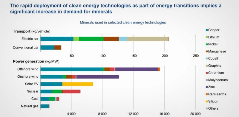 The rapid deployement of clean energy technologies as part of energy transitions implies a significant increase in demand for minerals